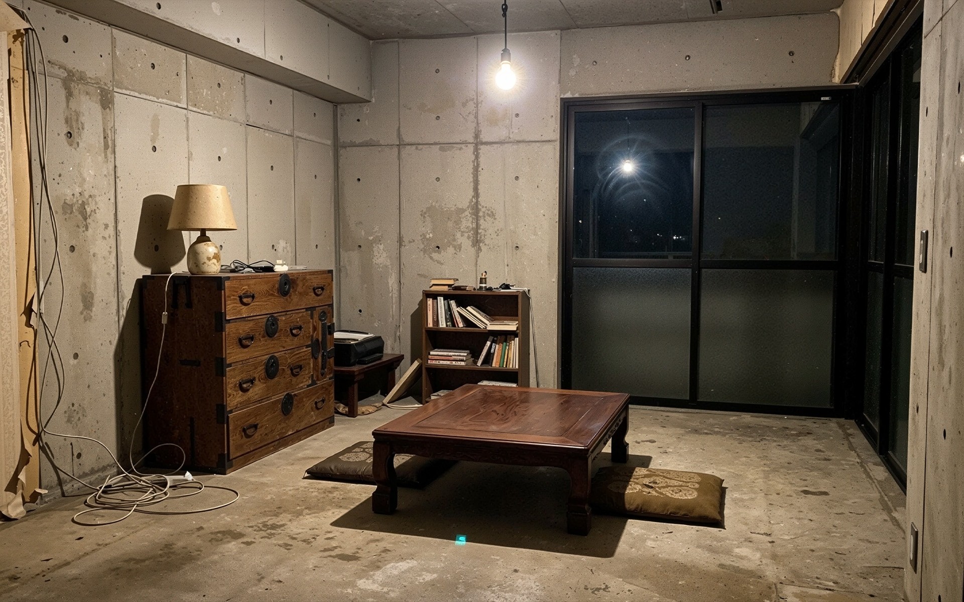 Concrete walls, warm timber cabinetry, and stone counters create an interplay between rawness and refinement. The result is a space that feels lived in, grounded, and emotionally calm.