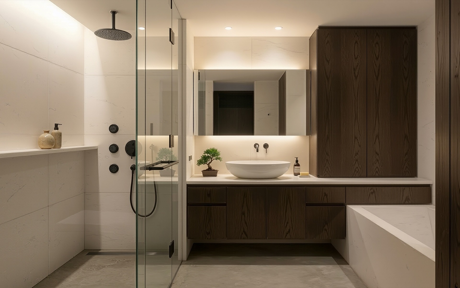 With warm wood accents and soft, controlled lighting, the bathroom becomes an oasis of simplicity and purity—an essential part of Japanese domestic culture.