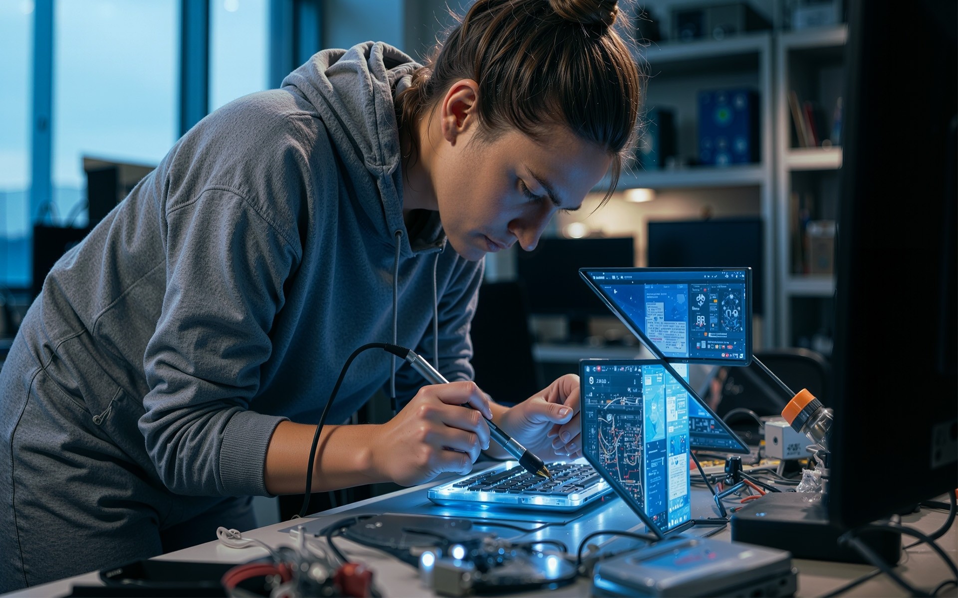 Every component was CNC-cut, hand-finished, and assembled on-site to ensure a perfectly seamless appearance in the final environment. The end result is a quiet but confident landmark within F’s workspace.