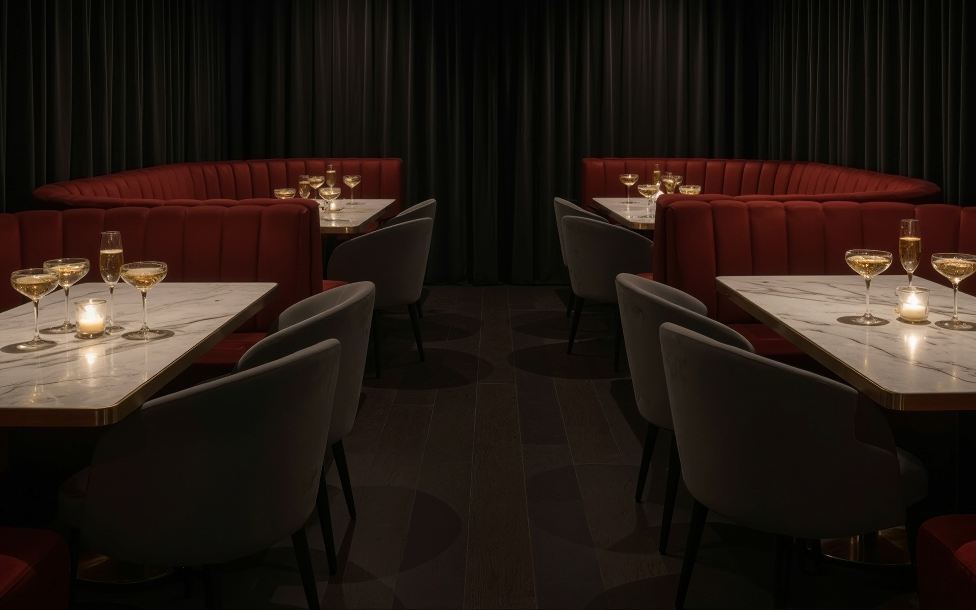 Luna Lounge, a boutique cocktail bar built around mood and materiality. Every surface was designed to shape the atmosphere: warm, intimate, cinematic.
